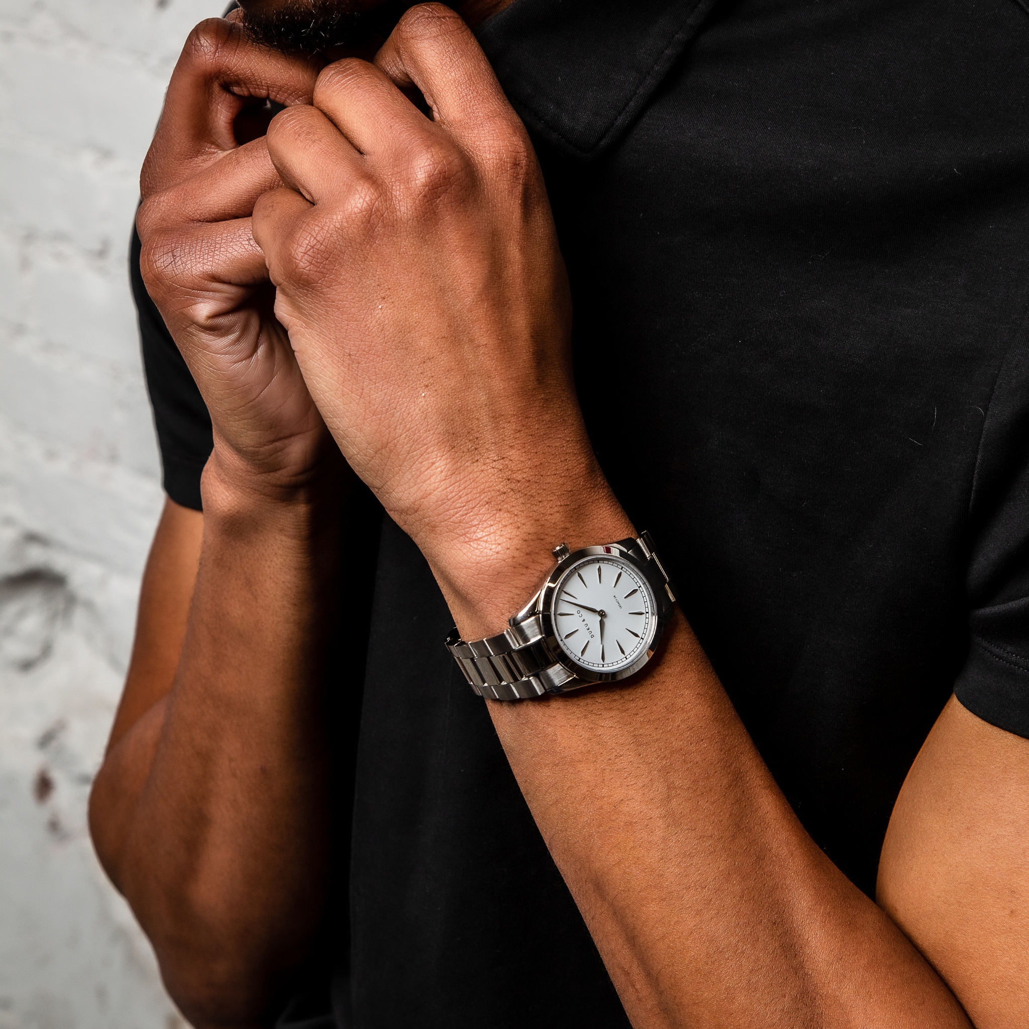 Out of stockThe SV Legacy 38 was designed with the original classic watch in mind, A silver stainless steel watch with a white dial. The silver 316L Stainless Steel case comes in a diameter of 38mm with a thickness of 10.35mm. This stainless steel watch is capped with flat sapphire crystal glass and has a water resistance of 50m. This watch is powered by The Miyota Standard 2025 Movement which is battery operated, or in watch language, Quartz.
